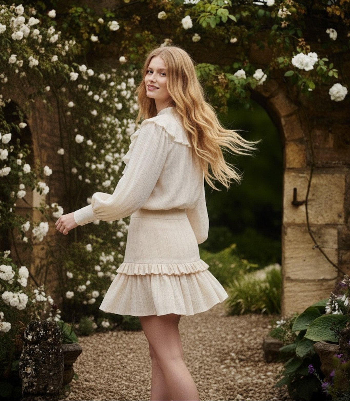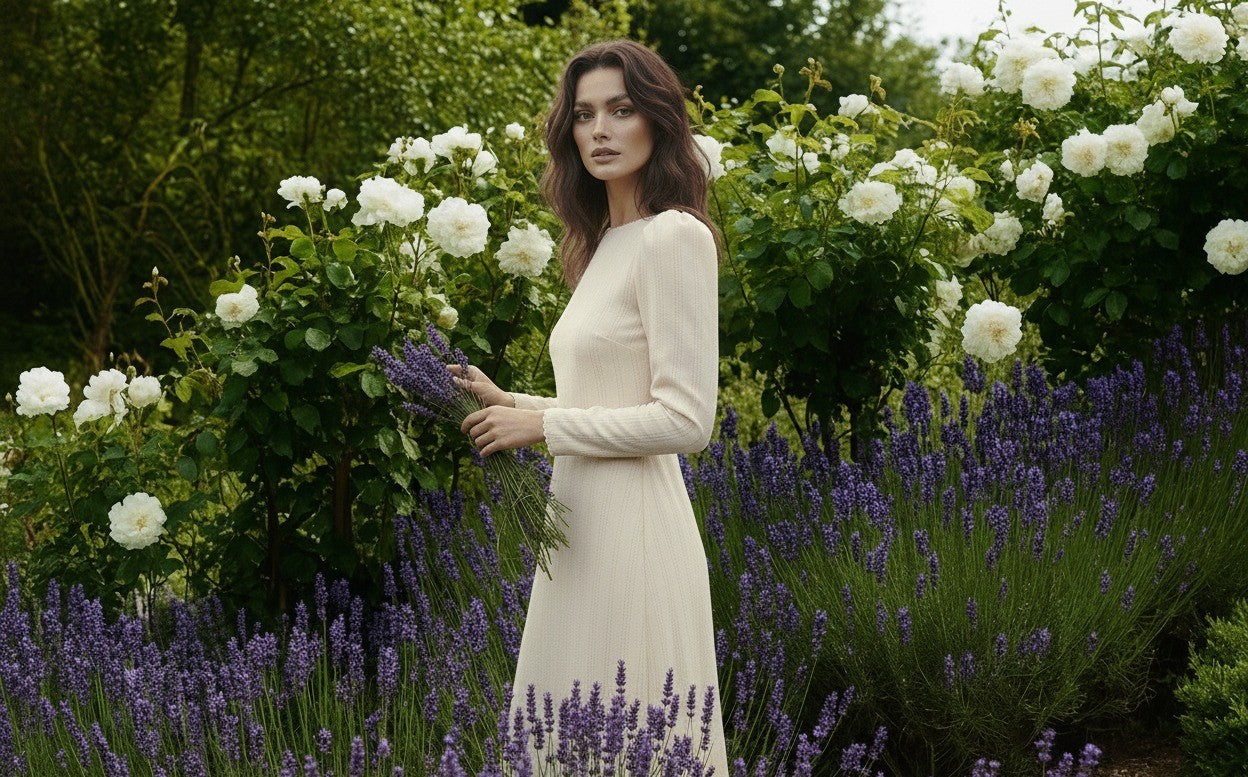 A tribute to feminine transformation — gentle, rooted, and quietlypowerful. Inspired by nature’s poetry, the collection unfolds like a garden in motion: delicate florals, embroidered butterflies, and golden bees breathe life into eachpiece.